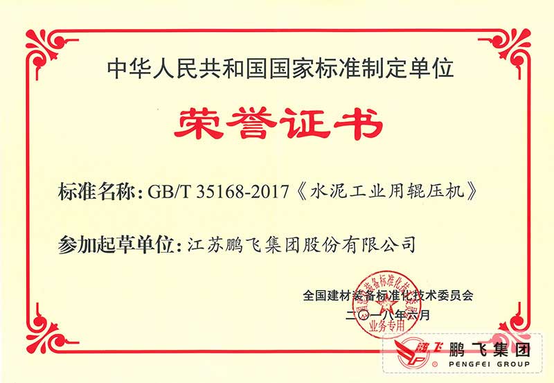 (2017年6月21)回轉(zhuǎn)窯國(guó)標(biāo)起草證書技術(shù)標(biāo)準(zhǔn)優(yōu)秀獎(jiǎng)