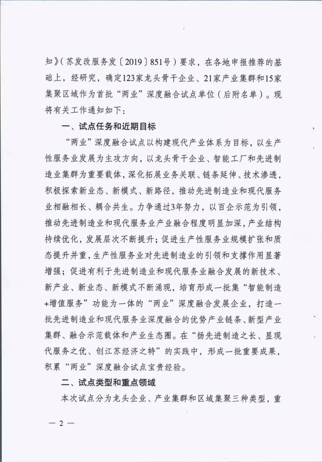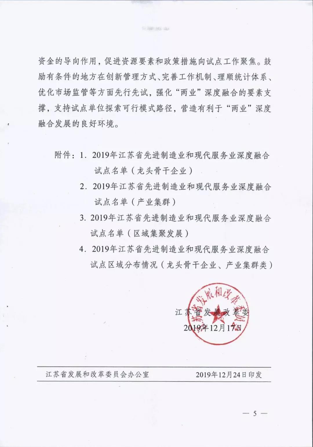 為貫徹落實中央深改委第十次會議精神、國家發(fā)改委等部門《關于推動先進制造業(yè)和現(xiàn)代服務業(yè)深度融合發(fā)展的實施意見》(發(fā)改產業(yè)〔2019〕1762號)和省委省政府部署要求,進一步推動先進制造業(yè)和現(xiàn)代服務業(yè)深度融合發(fā)展,我省啟動開展了江蘇省先進制造業(yè)和現(xiàn)代服務業(yè)深度融合試點推薦申報和遴選工作。根據(jù)《省發(fā)展改革委關于組織開展江蘇省先進制造業(yè)和現(xiàn)代服務業(yè)深度融合試點工作的通知》(蘇發(fā)改服務發(fā)〔2019〕851號)要求,在各地申報的基礎上研究確定123家龍頭骨干企業(yè)、21家產業(yè)集群和15家集聚區(qū)域作為首批“兩業(yè)”深度融合試點單位。我市江蘇鵬飛集團股份有限公司大型成套裝備總集成總承包融合試點、鑫緣繭絲綢集團股份有限公司繭絲綢全產業(yè)鏈產品生命周期管理融合試點、中國天楹股份有限公司智慧城市環(huán)境管理系統(tǒng)應用總集成總承包融合試點共三家企業(yè)入選試點名單。
