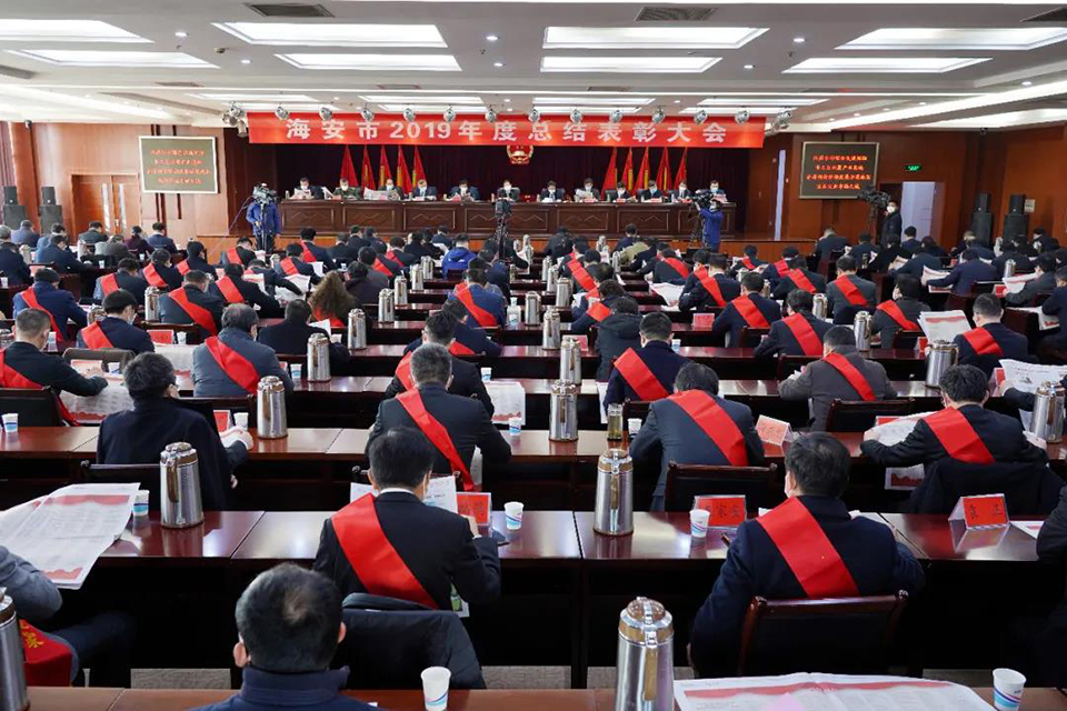3月14日上午,海安市召開2019年度總結(jié)表彰大會(huì),表彰全市各條戰(zhàn)線涌現(xiàn)的先進(jìn)單位和個(gè)人,由于受新型冠狀肺炎疫情的影響,會(huì)議實(shí)施一人一桌簡(jiǎn)便召開。會(huì)議設(shè)主會(huì)場(chǎng)和分會(huì)場(chǎng),由海安融媒體中心進(jìn)行現(xiàn)場(chǎng)直播。市四套班子全體負(fù)責(zé)人,各區(qū)鎮(zhèn)、各部門主要負(fù)責(zé)人、受表彰對(duì)象代表出席會(huì)議。會(huì)議由于立忠市長(zhǎng)主持,宣讀表彰決定,獲獎(jiǎng)單位分別上臺(tái)領(lǐng)獎(jiǎng),顧國(guó)標(biāo)書記做了重要講話。鵬飛集團(tuán)榮獲海安市委、市政府授予的杰出貢獻(xiàn)獎(jiǎng)、工業(yè)百強(qiáng)企業(yè)、開放型經(jīng)濟(jì)先進(jìn)企業(yè)、海安市市長(zhǎng)質(zhì)量獎(jiǎng)、王家安董事長(zhǎng)當(dāng)選六星級(jí)企業(yè)家。