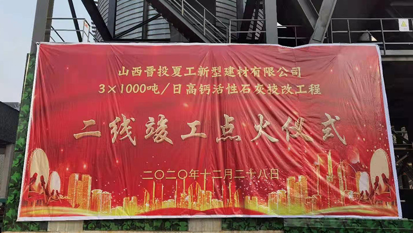 12月28日,由江蘇鵬飛集團制造的山西晉投夏工3×1000tpd高鈣活性石灰回轉(zhuǎn)窯生產(chǎn)線主機設(shè)備二線點火成功