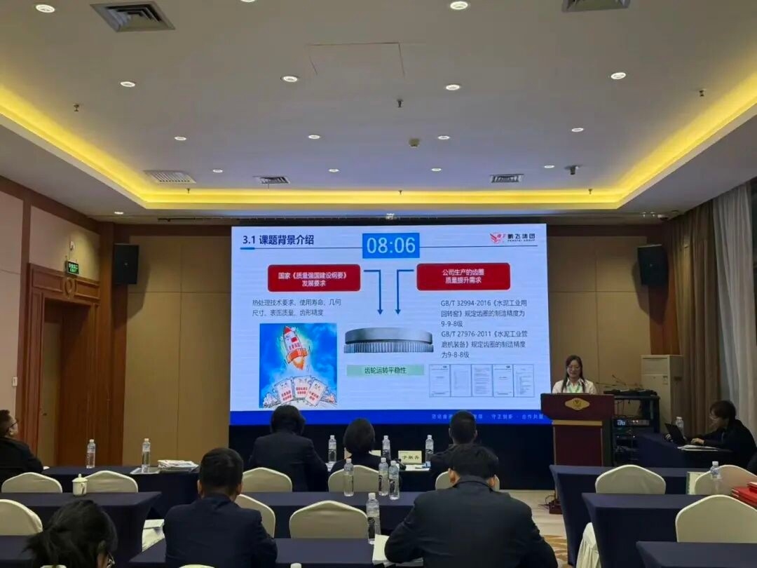 鵬飛金工QC小組發(fā)表成果《提高陽極爐齒圈和滾圈傳動連體一次加工合格率》。金工大齒輪組圍繞陽極爐齒圈和滾圈轉(zhuǎn)動連體加工中的變形和精度等問題,展開此次QC小組活動。小組利用創(chuàng)新工法的制定與實(shí)施,不僅提升了一次加工合格率18.2%,縮短了加工周期,還保障了產(chǎn)品的穩(wěn)定性,節(jié)約了成本。