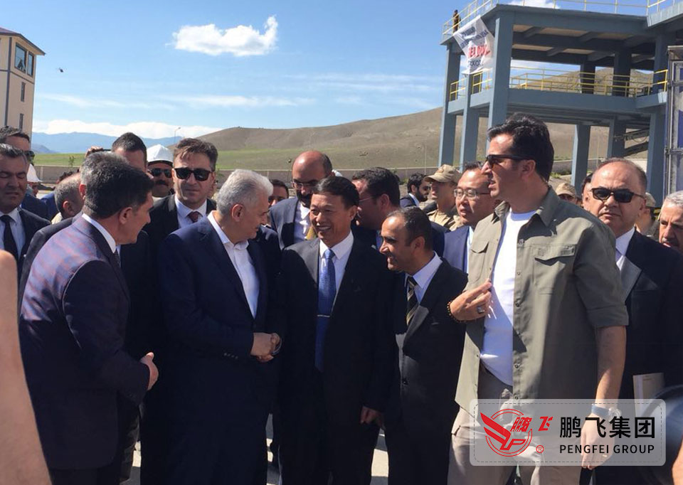 總裁王家安、土耳其總理耶爾德勒姆共同出席鵬飛集團(tuán)在土耳其承建的3000td水泥生產(chǎn)線剪彩儀式,并親切交談