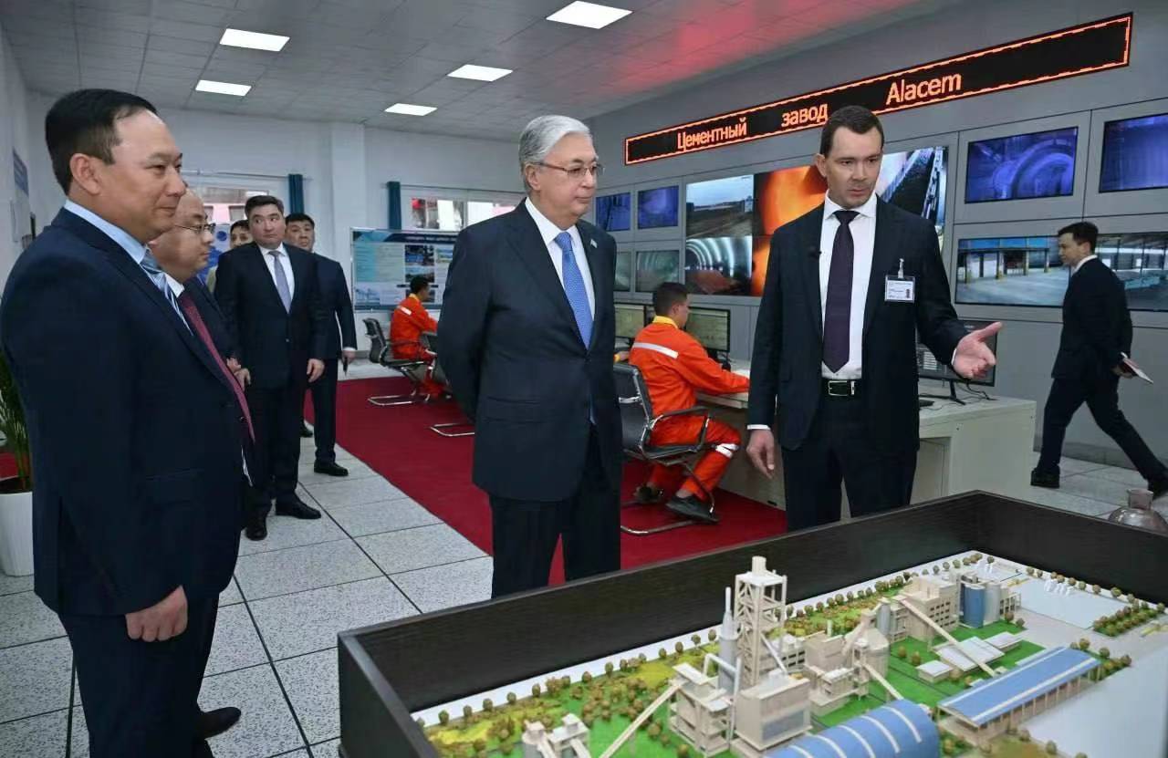 哈薩克斯坦總統(tǒng)托卡耶夫參觀鵬飛集團(tuán)總承包年產(chǎn)120萬(wàn)噸生產(chǎn)線