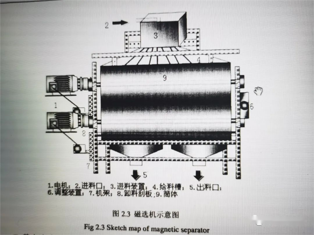 炙熱的菱鐵礦如果接觸氧氣很容易轉(zhuǎn)化為r-Fe2O3 ,甚至弱性的a-Fe2O3 ,導(dǎo)致弱磁選困難,為了防止焙燒礦在出窯時弱磁性赤鐵礦,故焙燒礦出窯方案設(shè)計為水封拉鏈水冷,出水溫度一般為70°C 左右。然后進(jìn)料倉,再經(jīng)過磨碎分級進(jìn)行磁選,選出精礦粉。