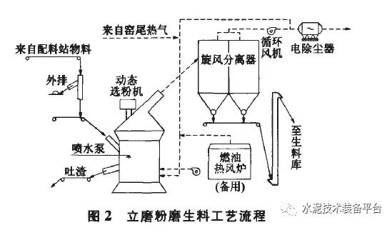 中卸烘干磨終粉磨生料工藝流程圖見圖1.