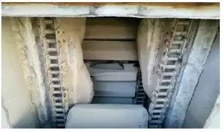 原來設(shè)計是粉磨水泥,調(diào)配原料經(jīng)皮帶輸送提升機,再到鎖風閥,后來增加礦渣輸送經(jīng)皮帶輸送到提升機,皮帶機機頭易堵,提升機殼體黏料(如圖3所示)。