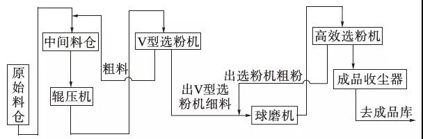 本試驗(yàn)僅是通過(guò)分料閥用空氣輸送斜槽將部分出V型選粉機(jī)微粉輸送至高效選粉機(jī)進(jìn)行分選形成半終粉磨工藝,未對(duì)其他設(shè)備進(jìn)行改造,此工藝改造簡(jiǎn)單,實(shí)施方便。根據(jù)相關(guān)文獻(xiàn)報(bào)道,其他通過(guò)調(diào)整磨機(jī)級(jí)配、重新分配磨機(jī)倉(cāng)長(zhǎng)、改造O-Sepa選粉機(jī)等措施也可有效提高半終粉磨工藝的磨機(jī)產(chǎn)量。