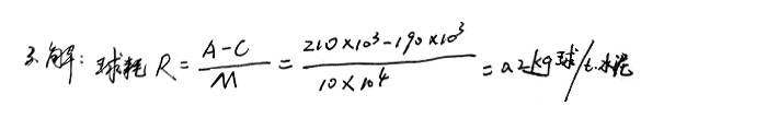 3、一臺磨機第一次裝入研磨體的質(zhì)量是210t,中間無補球,經(jīng)過粉磨10萬噸水泥后清倉,清倉后研磨體的總質(zhì)量為190t(不含碎球和過小的球),求該種研磨體球耗。