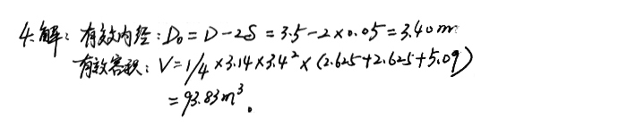 4、已知某φ3.5m磨機襯板的厚度為0.05m,一倉長2.625m,二倉2.3625m,三倉5.09m,求該磨機的有效內(nèi)徑和有效容積。
