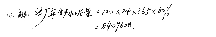 10、某廠水泥磨臺時產(chǎn)量為120t/h,問運轉(zhuǎn)率為80%時,該廠一年可以生產(chǎn)多少水泥?