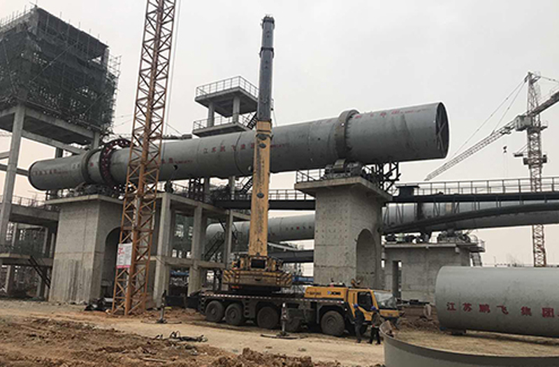轉(zhuǎn)化焙燒:鋰輝石精礦從精礦庫人工送至斗式提升機提升至精礦倉,再經(jīng)圓盤給料機和螺旋給料機加入碳酸鋰回轉(zhuǎn)窯窯尾,利用窯尾預(yù)熱段高溫氣體干燥精礦,精礦在煅燒段約1200℃左右的溫度下進行晶型轉(zhuǎn)化焙燒,由α型(單斜晶系,密度3150kg/m3)轉(zhuǎn)化為β型鋰輝石(四方晶系,密度2400kg/m3,即焙料),轉(zhuǎn)化率約98%。
