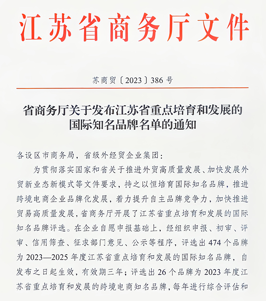 江蘇省重點培育和發(fā)展的國際知名品牌的評選是江蘇省商務廳為貫徹落實《中共江蘇省委江蘇省人民政府關于推進貿易高質量發(fā)展的實施意見》等文件要求,持之以恒培育國際知名品牌,推進跨境電商企業(yè)品牌化發(fā)展,著力提升自主品牌競爭力,加快推進貿易高質量發(fā)展的精神要求而組織實施。
