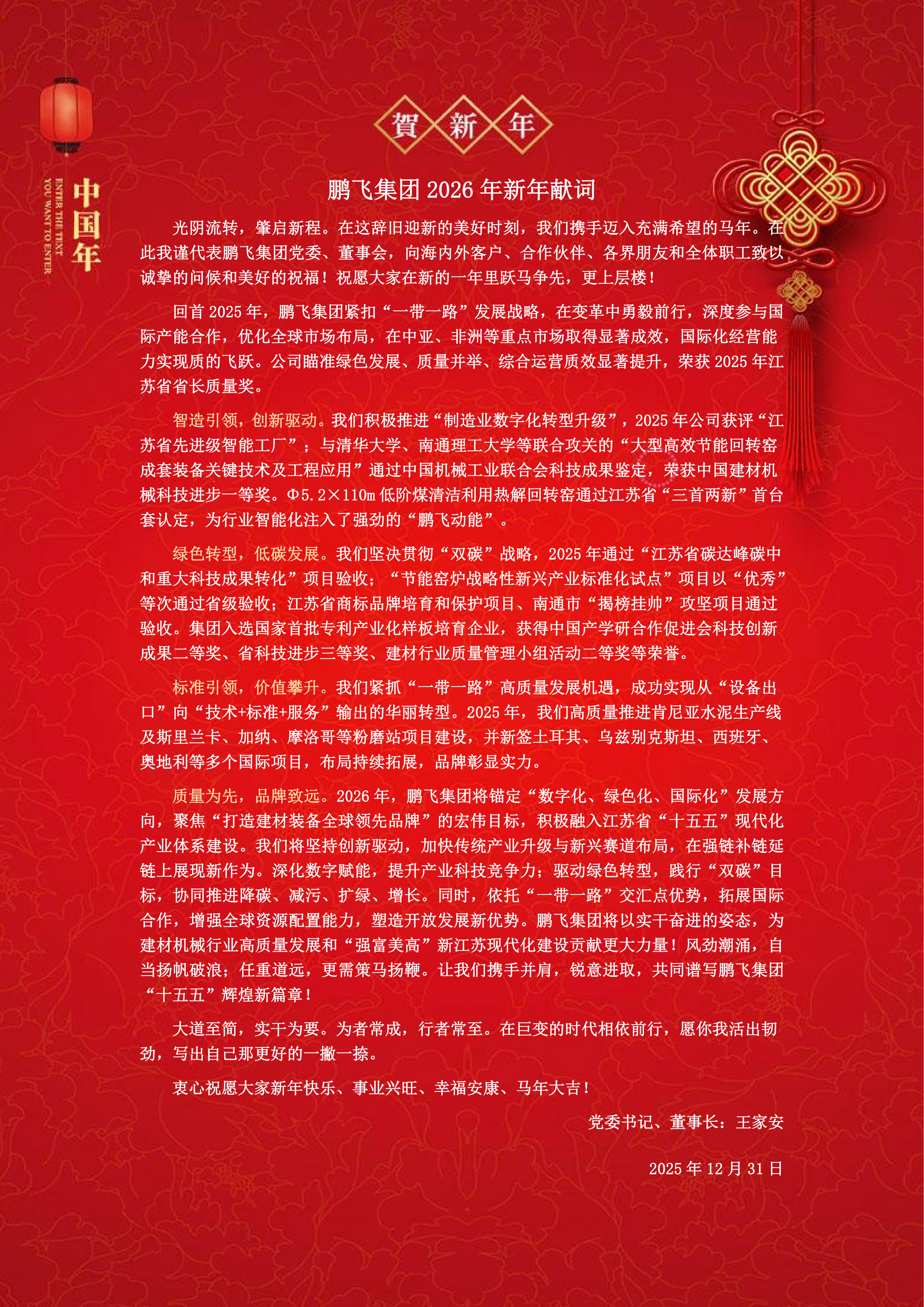 駿馬奔騰 萬象更新 | 鵬飛集團(tuán)2026年新年獻(xiàn)詞